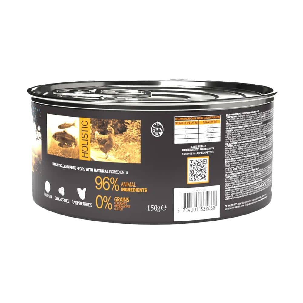 „Ambrosia Salmon & Chicken“ receptūra – tai puikus lašišos ir vištienos mėsos derinys, užtikrinantis subalansuotą ir skanų maistą. Tinkamas sterilizuotiems katėms ir kačiukams, jis pasižymi idealiu drėgmės lygiu ir tekstūra, todėl jūsų augintiniui bus tikras gardus ir apetitą žadantis malonumas. Puikiai tinka kaip visavertis maistas arba kaip priedas prie jūsų katės sauso maisto. „Ambrosia Salmon & Chicken“ – tai aukščiausios kokybės be grūdų katės maistas, užtikrinantis optimalų visų kačių ir kačiukų mitybą.