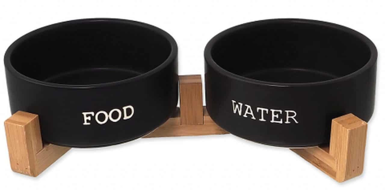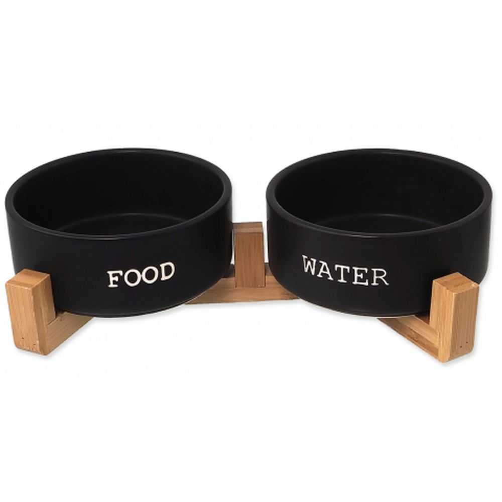Dog Fantasy keramikiniai dubenėliai su neslystančiu bambukiniu stovu, 850ml (juoda)