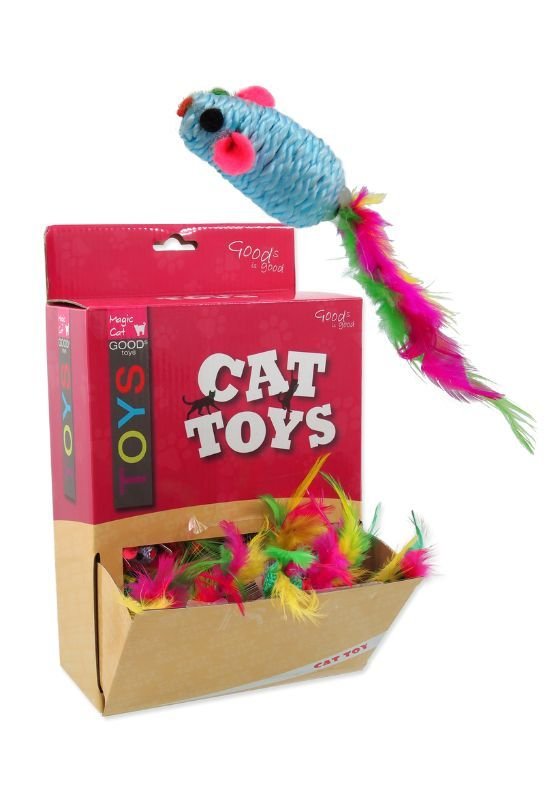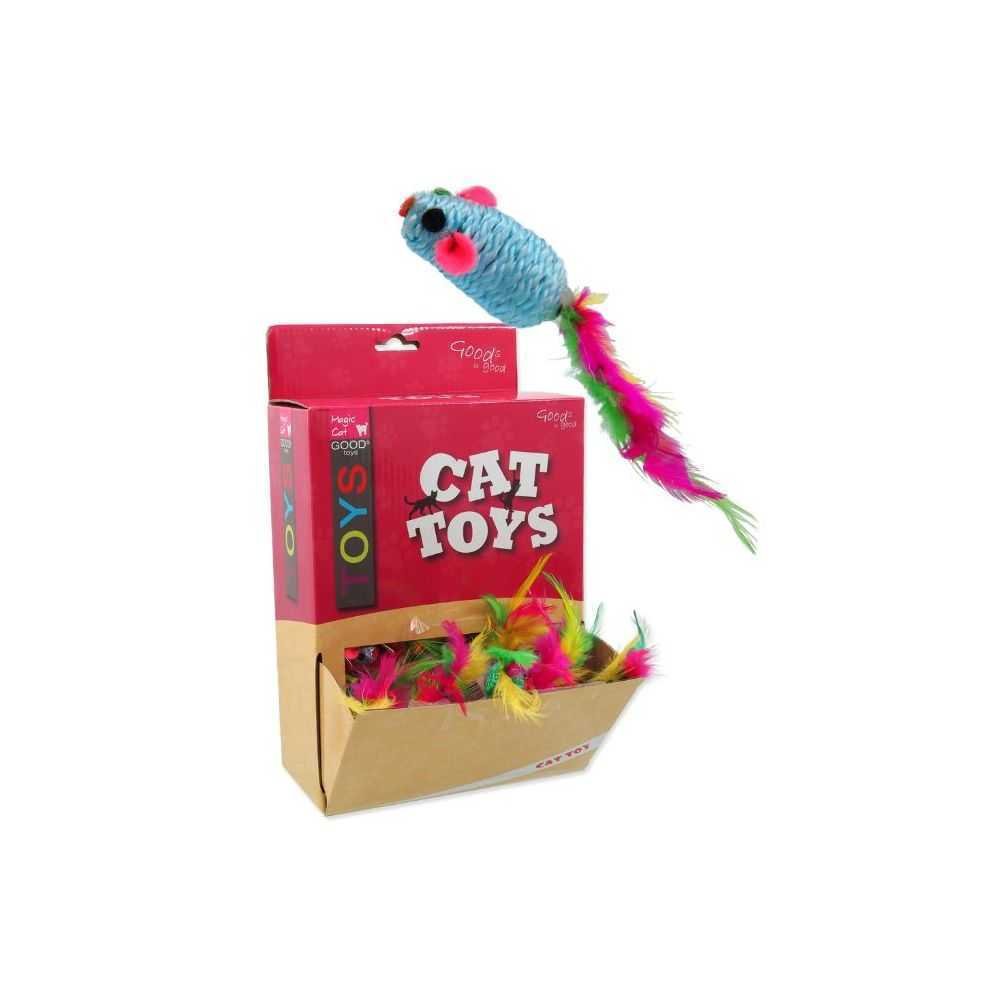 Magic Cat – sizalo virvės pelytė su plunksnomis, 6cm