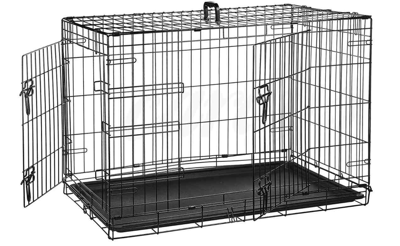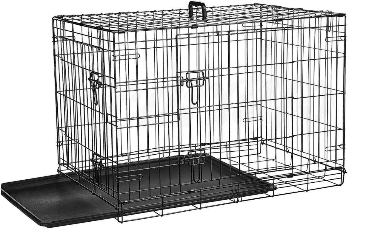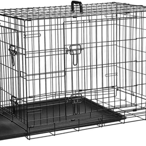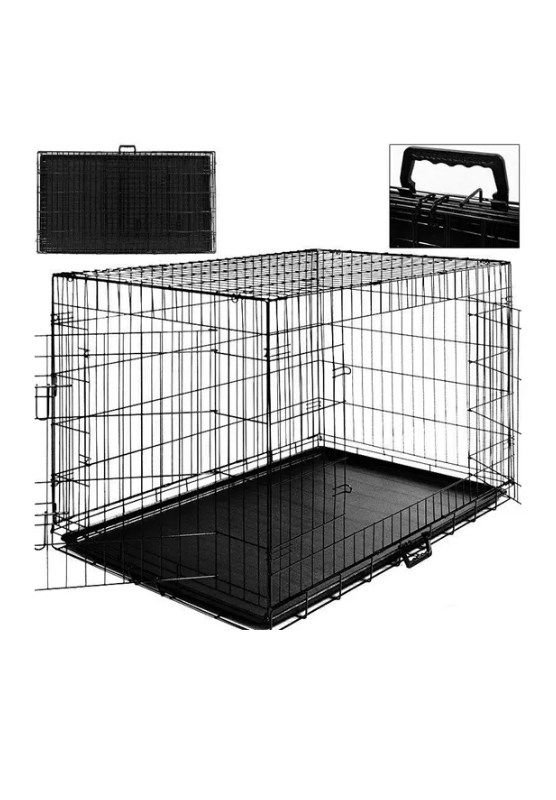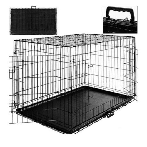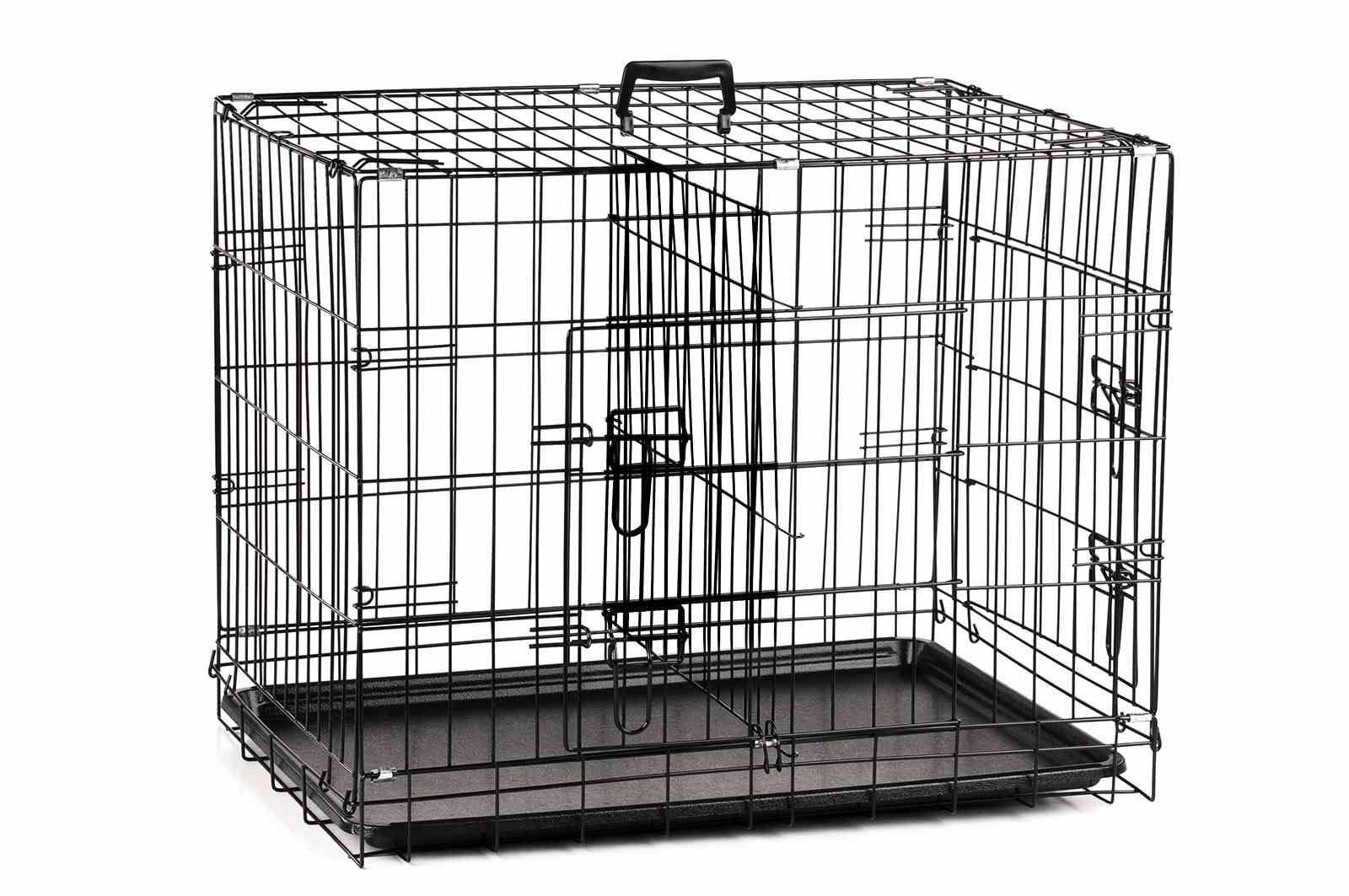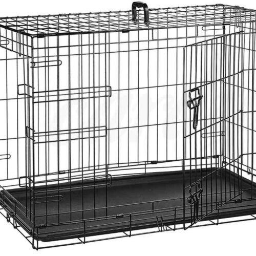 Šuns ar katės metalinis narvas dviejų durelių su plastmasiniu išimamu padėklu.