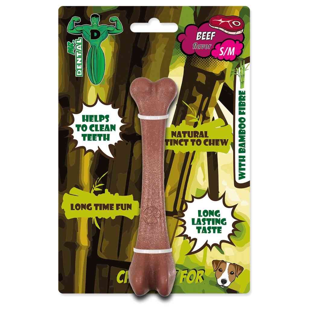 Kramtomasis žaislas Mr. „Dental Bambone“ kaulo formos jautienos kvapo. Ypač tvirtas, su bambuko pluoštu. Kramtomi kaulai nesudaro aštrių kraštų, kurie galėtų sužeisti šuns dantenas, kaip dažnai atsitinka kramtant džiovintos buivolo odos kaulus.