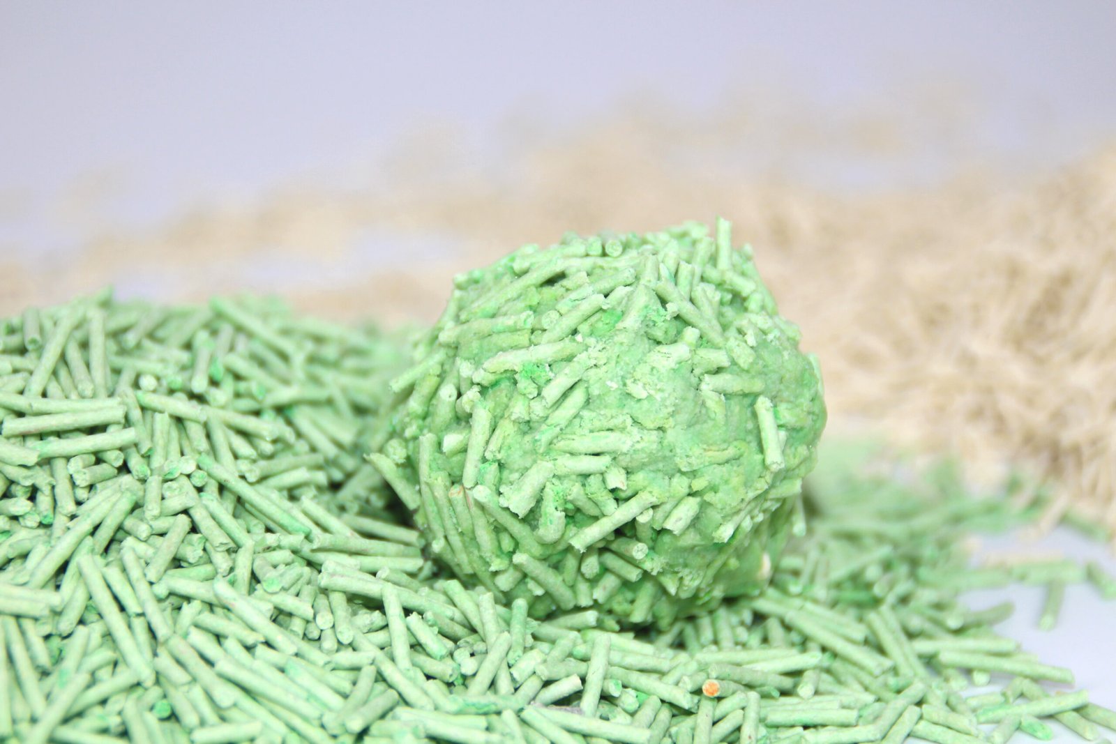 1. Supilkite Murrfect Green Tea Tofu kačių kraiką į kraiko dėžę kelių centimetrų gilio.