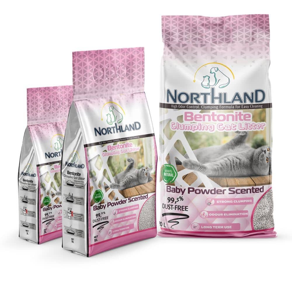 Northland Baby Powder Bentonito kraikas katėms su vaikiškos pudros kvapu yra aukštos kokybės kraikas, pagamintas iš natūralaus bentonito molio. Jis skirtas katėms, kurios mėgsta švarą ir komfortą, nes šis kraikas pasižymi puikiu gebėjimu sugerti drėgmę ir nemalonius kvapus, tuo pačiu išlaikydamas malonų vaikiškos pudros kvapą.