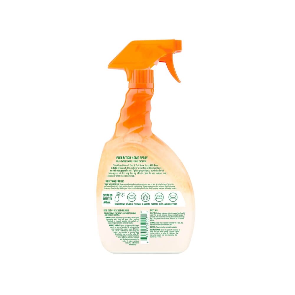 Natūralus Tropiclean Flea&Tick Spray purškalas garantuoja efektyvų blusų ir erkių išnaikinimą ant šuns kailio ir jo guolyje tiesioginio kontakto būdu. Šis purškalas pagamintas iš natūralių gamtoje randamų ingredientų, kurie yra žinomi dėl savo kenkėjų naikinimo savybių, o sudėtyje esantys citrinžolė ir sezamo aliejus užtikrina ilgalaikį efektą. Šį purškalą galima naudoti suaugusiems ir jauniems šuniukams (nuo 12 savaičių amžiaus).